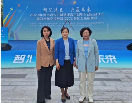 4月15日上午,2024年河南省先进制造业青年就业行动启动仪式暨郑州航空港经济综合实验区专场招聘会在河南省医学科学院举行。李志萍带领招生就业处、经济管理系有关负责人参加启动仪式,并在现场访企拓岗。