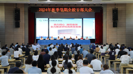 8月30日上午,我校召开2024年秋季学期全校干部大会。大会主题是“勠力同心,踔厉奋发,全力推进学校高质量发展”。校党委书记李广慧,党委副书记、校长李志萍和校领导班子成员出席会议,全校副科级以上干部参加会议。党委副书记、副校长蒋彦成主持会议。