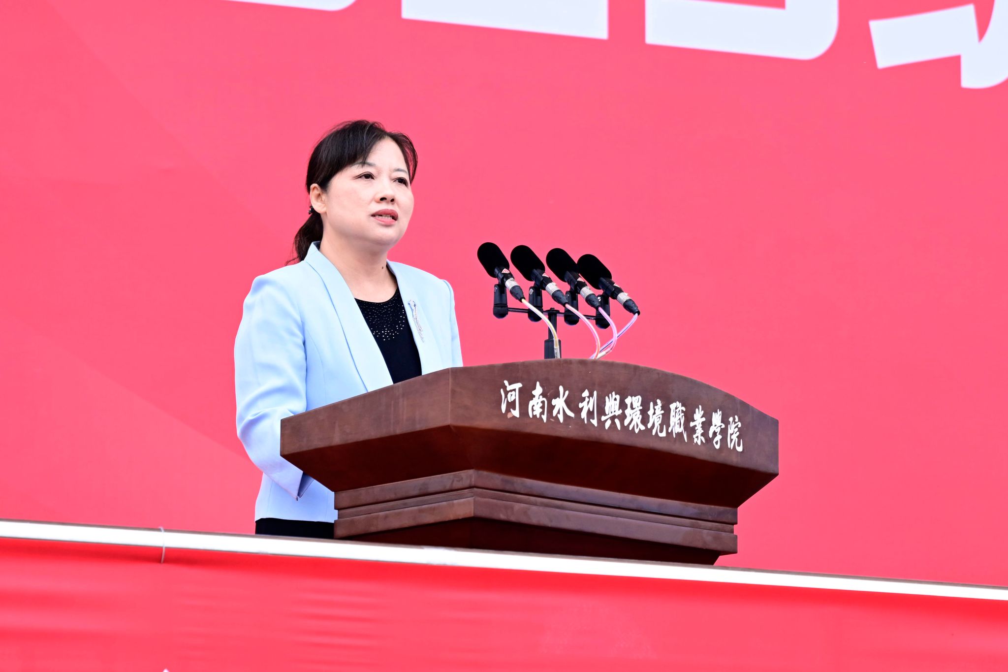 伴随着庄严的国歌声,大会正式启幕。校党委书记李广慧代表学校致欢迎辞,以“目标、技能、创新、品格”为核心向新生提出四点希望:一是锚定目标、科学规划人生,实现个人成长与国家发展同频共振;二是锤炼技能、秉承工匠精神,通过实践持续提升专业能力;三是勇于创新、关注前沿领域,以实际成果回应时代变革;四是涵养品格、严守校纪校规,做到技能与品行双过硬。