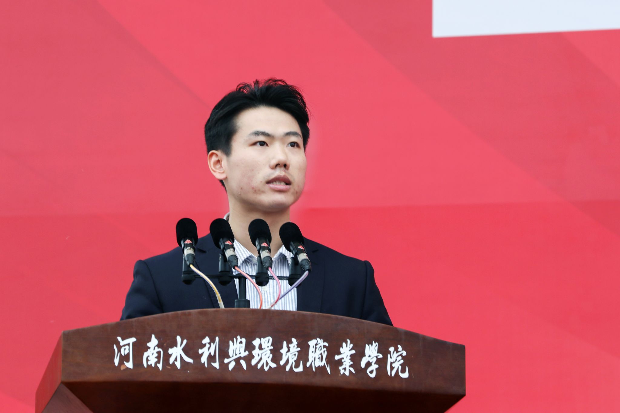 信息工程学院24企信2班的田广雨、土木工程学院24造价2班的崔瑞星同学作为老生代表发言。